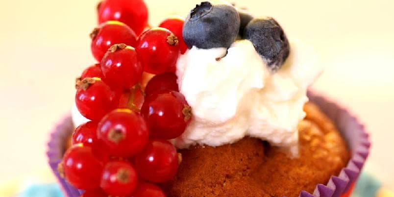 Først starter du med å male mandler til mel (her kan både blender, kjøkkenmaskin, stavmikser og lignende brukes). Deretter visp egg og sukrin til eggedosis. Tilsett så det tørre sammen med halvtinte (eller ferske) bær og ha i smør. Legg opp 12 muffinsformer, fyll disse 2/3. Sett inn i ovn ca. 12 minutter.